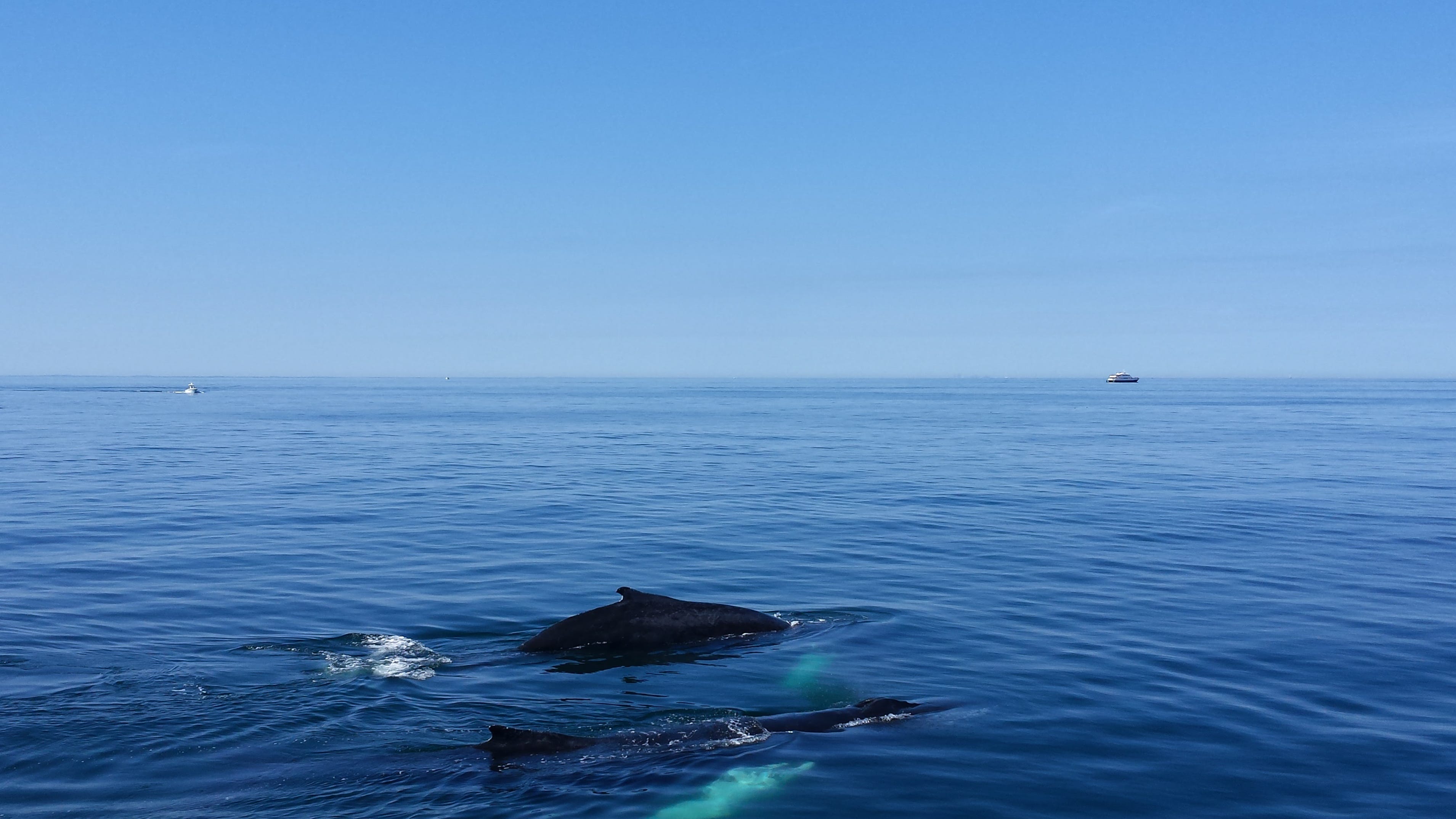 Rose Anne’s fellow interns all came from different backgrounds, with most studying marine biology or another related subject. One intern, Kevin, was a musician who was between gigs and wanted to do something different. He’s now a music teacher living in Hong Kong. Her closest friend from the program was a 19-year-old English intern named Eva Prendergast, who will soon continue her cetacean research with National Geographic Expeditions on a ship in Antarctica. The age difference didn’t really matter to Rose Anne — she has nieces and nephews (like me) who are around Eva’s age. “She was gregarious, just this bigger-than-life person. She was up for anything. I think she challenged me to just have fun. She helped me get through my anxiety about what I was doing in a very short time. I just felt a kinship toward her right away.” When the internship in Brighton ended, Eva joined Rose Anne at their next WCA stop: Cape Ann Whale Watch in Gloucester, Massachusetts.